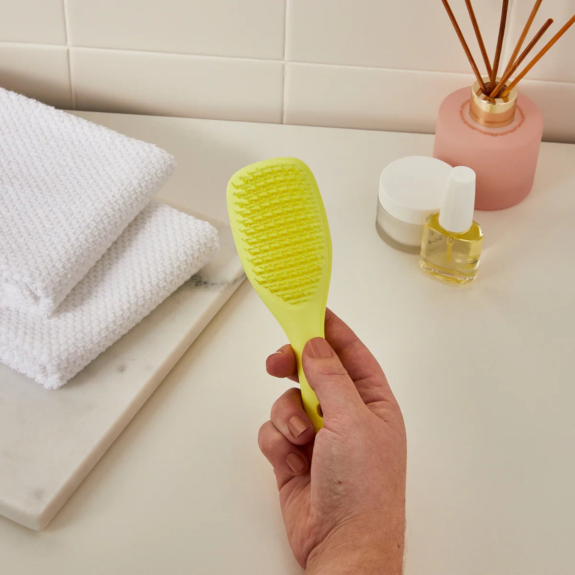 Use on wet or dry hair and gently brush from ends to roots. Ideal for travel or everyday use.